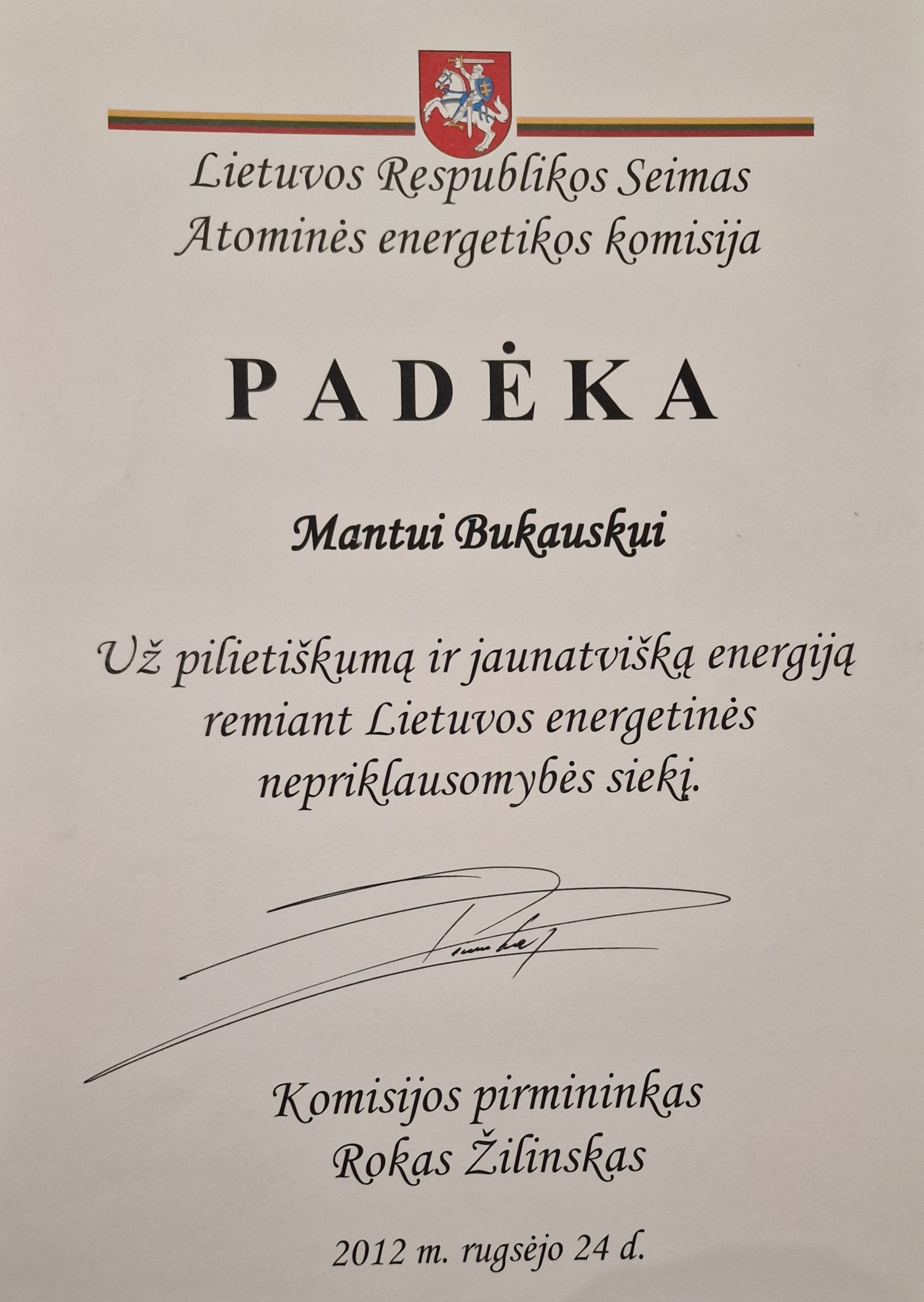 Also I have received acknowledgment from Parlament of Lithuania for my achievements in the studies.